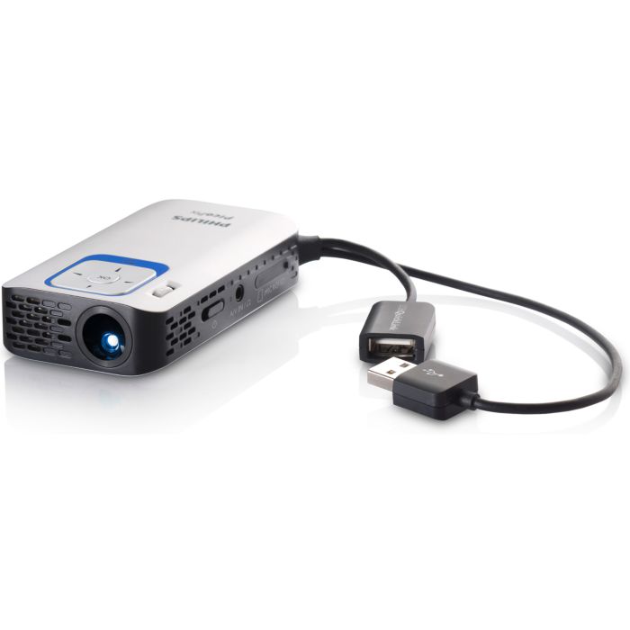 Il PicoPix Proiettore tascabile PPX2340/EU è un dispositivo portatile ideale per proiettare i tuoi contenuti digitali su uno schermo di dimensioni fino a 60 pollici. Collegalo facilmente tramite la spina USB e presa USB inclusa, ed è perfetto per presentazioni, riunioni o semplicemente per divertirsi con la famiglia.